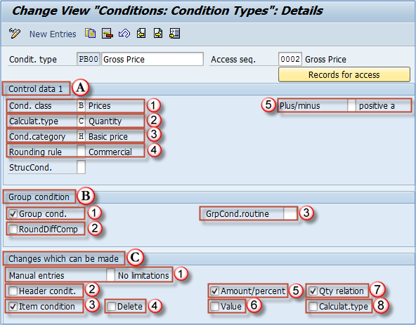 - 条件类别(例如,基本价格、进项税)