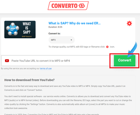 如果您想避免下载软件来从 YouTube 下载音乐,可以使用在线平台来完成同样的工作。它们只需要您粘贴从中提取音频的 YouTube 视频链接,然后点击下载。