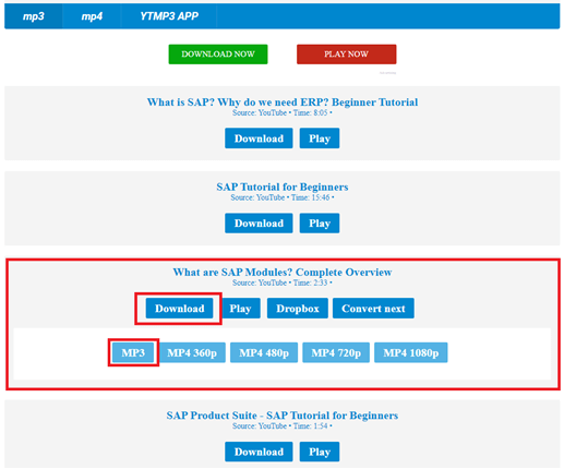 步骤 4) 从列表中找到您的音频。点击下载并选择 MP3 开始下载过程。