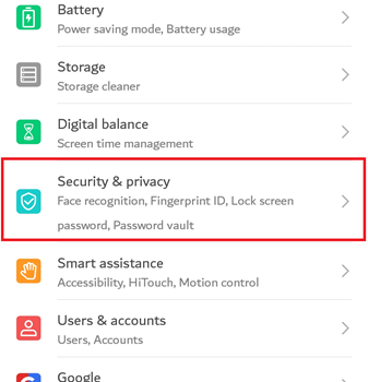 步骤 2) 找到“安全和隐私”并点按它。