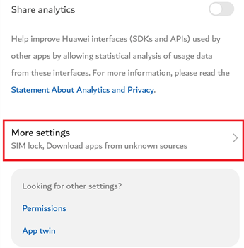 步骤 3) 向下滚动并进入“更多设置”。