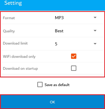 步骤 12) 选择您想同时下载的音频文件的格式、质量和数量。然后按确定。