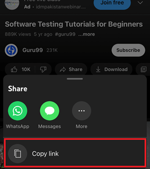 步骤 3) 复制 YouTube 视频链接以提取其音频。