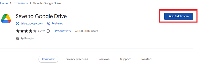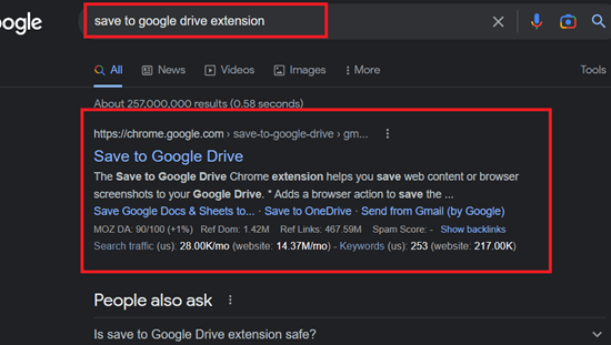 步骤 1) 搜索“保存到 Google Drive 扩展程序”并打开第一个链接。