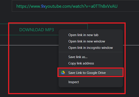 步骤 8) 右键单击下载 MP3 按钮,然后选择“将链接保存到 Google Drive”。