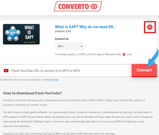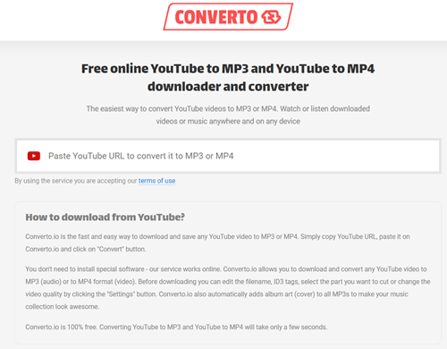 步骤 1) 打开 Converto 网站或任何其他流行的在线 YouTube 到音乐转换器。