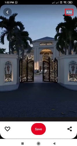 步骤 1)在手机上的 Pinterest 应用中打开帖子,然后点击屏幕右上角的三个水平点,如下图所示。
