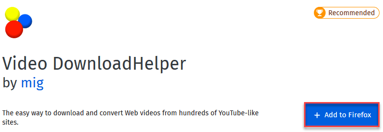 步骤 1) 从 https://addons.mozilla.org/en-US/firefox/addon/video-downloadhelper/ 下载 Firefox 扩展。