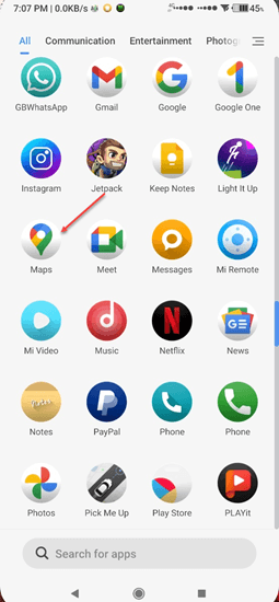 步骤 1)在您的移动设备上找到 Google Maps 应用程序。