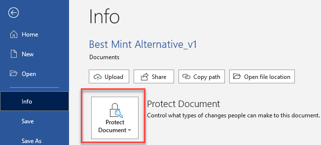 选择“保护文档”选项。