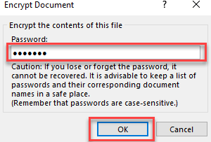 步骤 5) 弹出框会要求您设置密码来保护您的文档。