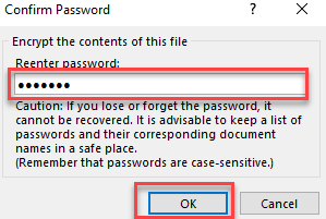 步骤 7) 最后,重新输入密码并单击 OK 以完成。流程。