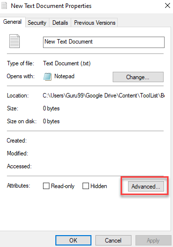 您将看到文件的属性。然后您需要单击“高级”按钮。