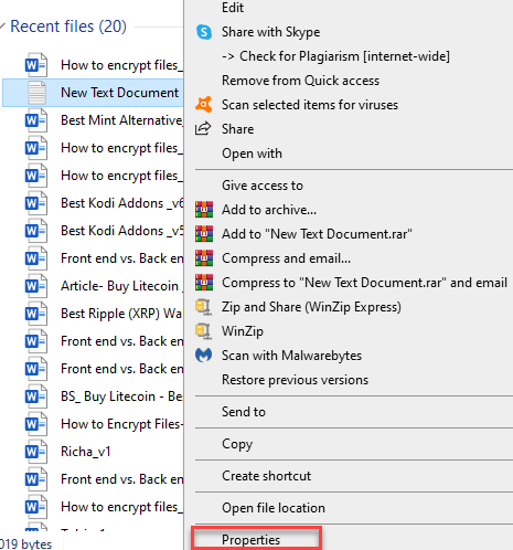 右键单击要加密的文件,然后选择属性。