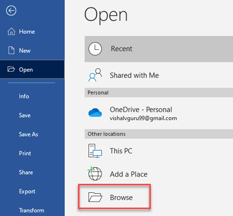 步骤 2) 现在,在 Microsoft Office 中,选择文件