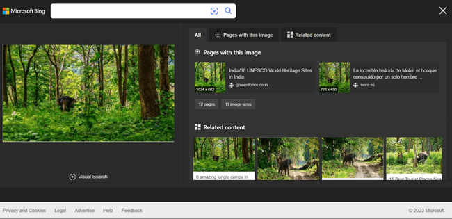 我评估了 Bing 图片搜索引擎,特别喜欢它通过图片查找人物的能力。凭借其视觉搜索工具,**Bing 会在网上返回相似的图像和结果**。它最适合需要详细且快速搜索结果的用户,当他们想要 Google 的替代方案时。