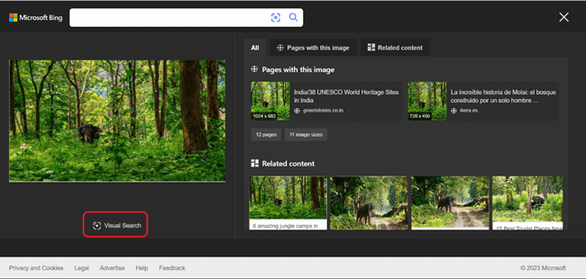 步骤 3)您可以使用下方的“视觉搜索”选项来裁剪和搜索图片中的特定对象,或者让它搜索整个图片。