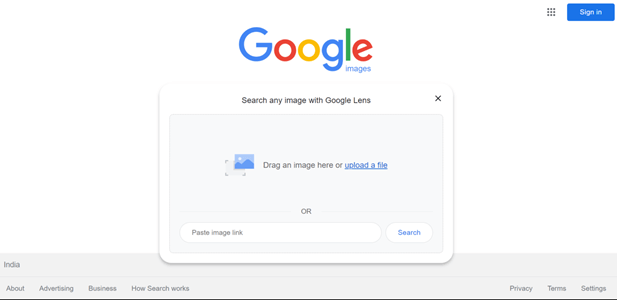 步骤 2)将出现一个对话框;现在粘贴要搜索的图片的 URL 或从您的设备上传图片。然后点击搜索按钮。