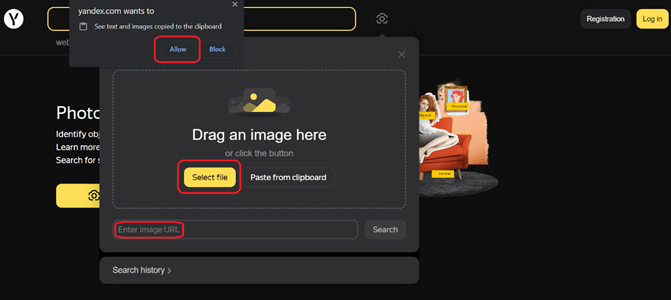 步骤 3)单击“上传图像”后,您的屏幕上将出现一个对话框。现在,授予剪贴板权限并上传图像或粘贴 URL。