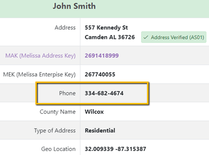 第3步)Melissa将提供该姓名的详细信息,包括电话号码、地址等。