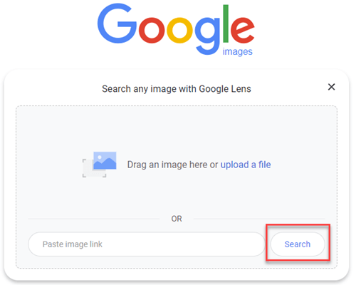 第 2 步)上传照片或将图片 URL 粘贴到搜索框中,然后点击搜索按钮。