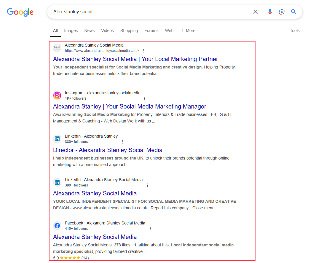 第 1 步)转到 Google,输入此人的姓名,然后添加“social”一词。