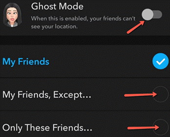 | Snap Map 对所有朋友仍然可见 | 调整隐私设置,并手动输入您想与之共享位置的朋友。 |