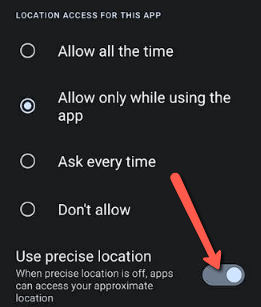 步骤 3) 现在,单击位置并向下滚动,您将在其中看到使用精确位置。您可以将其切换并关闭以撤销此权限。