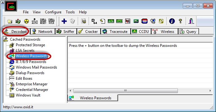 步骤2)选择“解码器”选项卡,然后选择“无线密码”