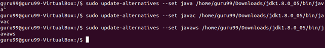 sudo update-alternatives --set java <Directory where JAVA has been extracted>/bin/java sudo update-alternatives --set javac <Directory where JAVA has been extracted>/bin/javac sudo update-alternatives --set javaws <Directory where JAVA has been extracted>/bin/javaws