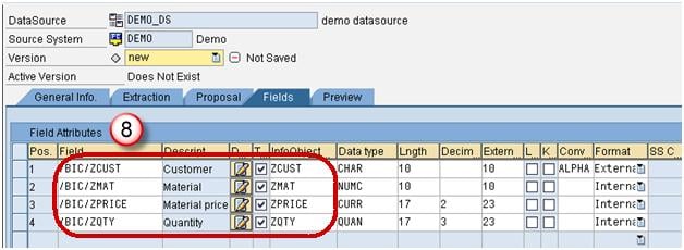 场景:将数据加载到名为“DEMO_DSO”的DSO。该DSO具有以下字段。
