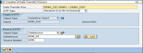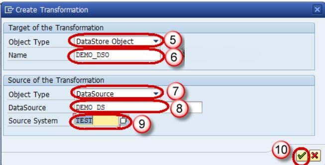 步骤 4)在数据源(源)和 DSO(目标)之间创建转换。