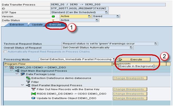 - 单击“执行”按钮以开始从数据源(PSA)到 DSO 的数据加载。
