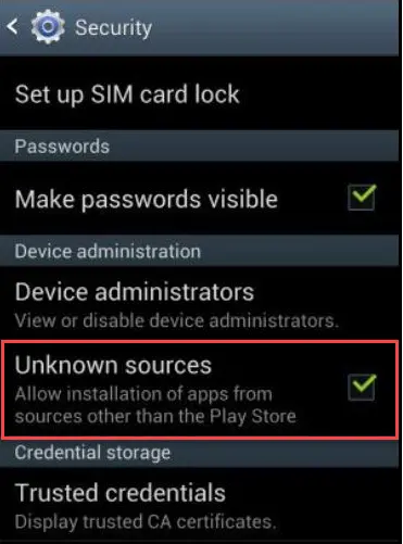 在“设备管理”下,勾选框以验证是否从未知来源安装应用。