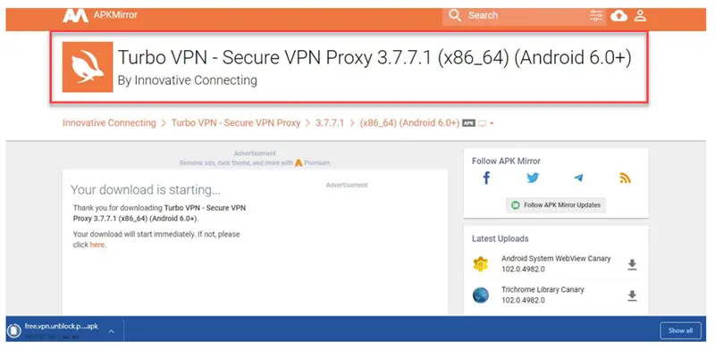 您将被引导到一个新页面,您可以在其中选择将用于下载 APK 文件的浏览器。
