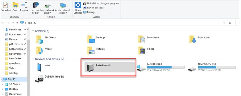 在“我的电脑”中打开“设备和驱动器”以在您的计算机上找到您的手机。