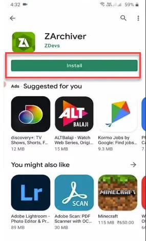 在 Google Play 商店中找到 ZArchiver 并下载它。