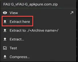 找到重命名后的 .zip 文件,然后点按“在此处提取”以开始提取 APK 文件。