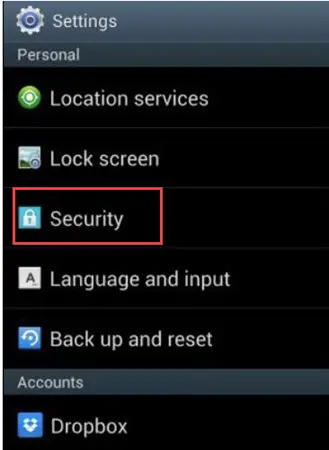 在您的 Android 设备(早期版本的 Android 操作系统)上,点按“安全”设置。