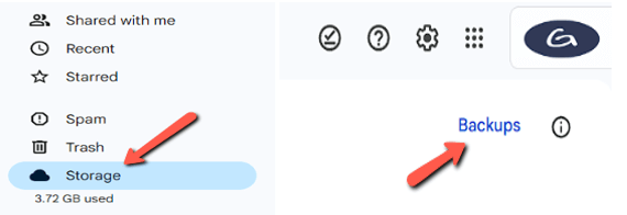 步骤2)现在点击侧边**菜单 > 存储**,然后转到**备份**。备份应在此列表中显示。