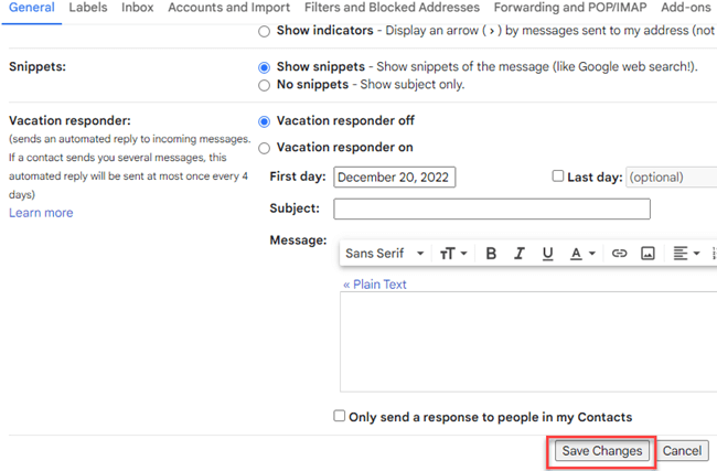 - 选择延迟时间后,您需要保存更改,以便 Gmail 可以更新您的设置。