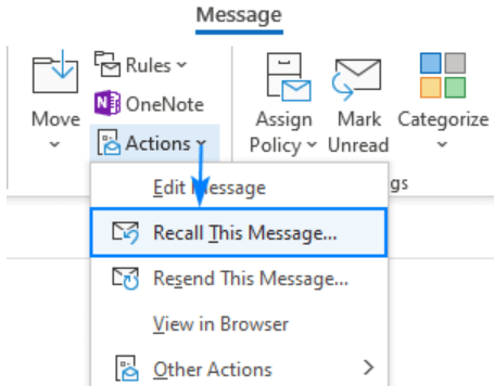 - 不同的电子邮件服务器。您都使用 Outlook 并不足够;您都应该在同一个服务器上。例如:从公司 A 的 Outlook Exchange 服务器发送到公司 B 的 Outlook Exchange 服务器的电子邮件**无法**撤回。因为它们都使用不同的电子邮件服务器。