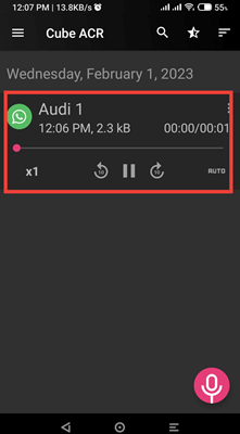 步骤 9) 通话结束后,应用程序会打开,您可以播放录音进行收听。