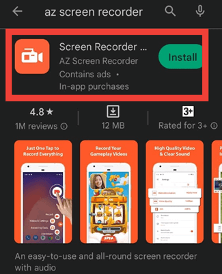 步骤 1) 从 Google Play 商店将 AZ Recorder App 安装到您的设备。