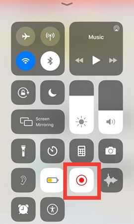 步骤 3) 点击控制中心上的屏幕录像机图标。将开始 3 秒倒计时,录制将立即开始。