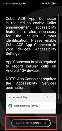 步骤 3) 为 Cube ACR 启用辅助功能选项。它启用该应用程序的来电播报辅助功能。