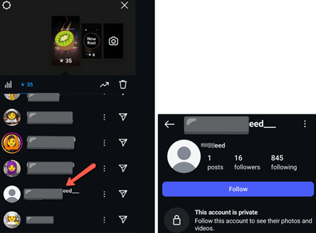 以下是一个跟踪者账户的示例,该账户随机观看我的快拍已有一年多,并且有时会消失。