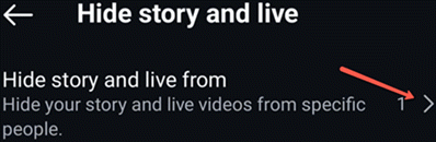 步骤 3) 这将带你到“隐藏快拍和直播”页面;点击此选项。