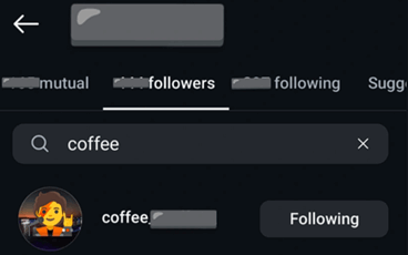 步骤 1) 前往你的个人主页,点击“关注者”,然后在搜索栏中输入账户名称进行搜索。如果你不是他们的关注者,也可以直接使用主页底部 🔍 图标的搜索栏,然后输入用户名。
