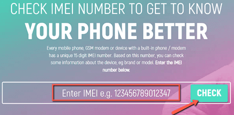 步骤 2)在提供的搜索栏中输入您手机的 IMEI 号码。